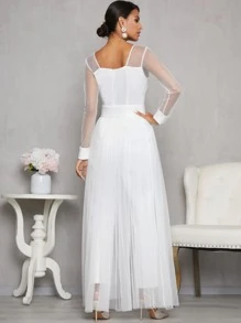 Jumpsuit with corset shein clearance, SHEIN Notch Neck Mesh Panel Pearl clearance