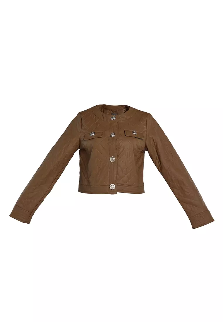 - Caramel faux leather jacket sale online