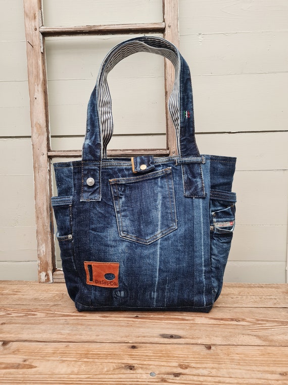Blue denim handbags clearance, Dark Blue Denim Shopper, Denim Shoulder Bag, Upcycled Denim Bag, Shoulder Bag clearance