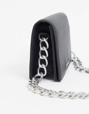 Black silver chain cross body bag clearance