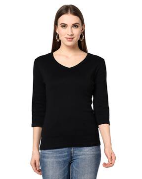 Long sleeve black v neck t shirt clearance, Buy TRENDS TOWER Women Full Sleeve V clearance