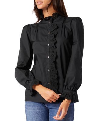 - Black silk ruffle blouse shop