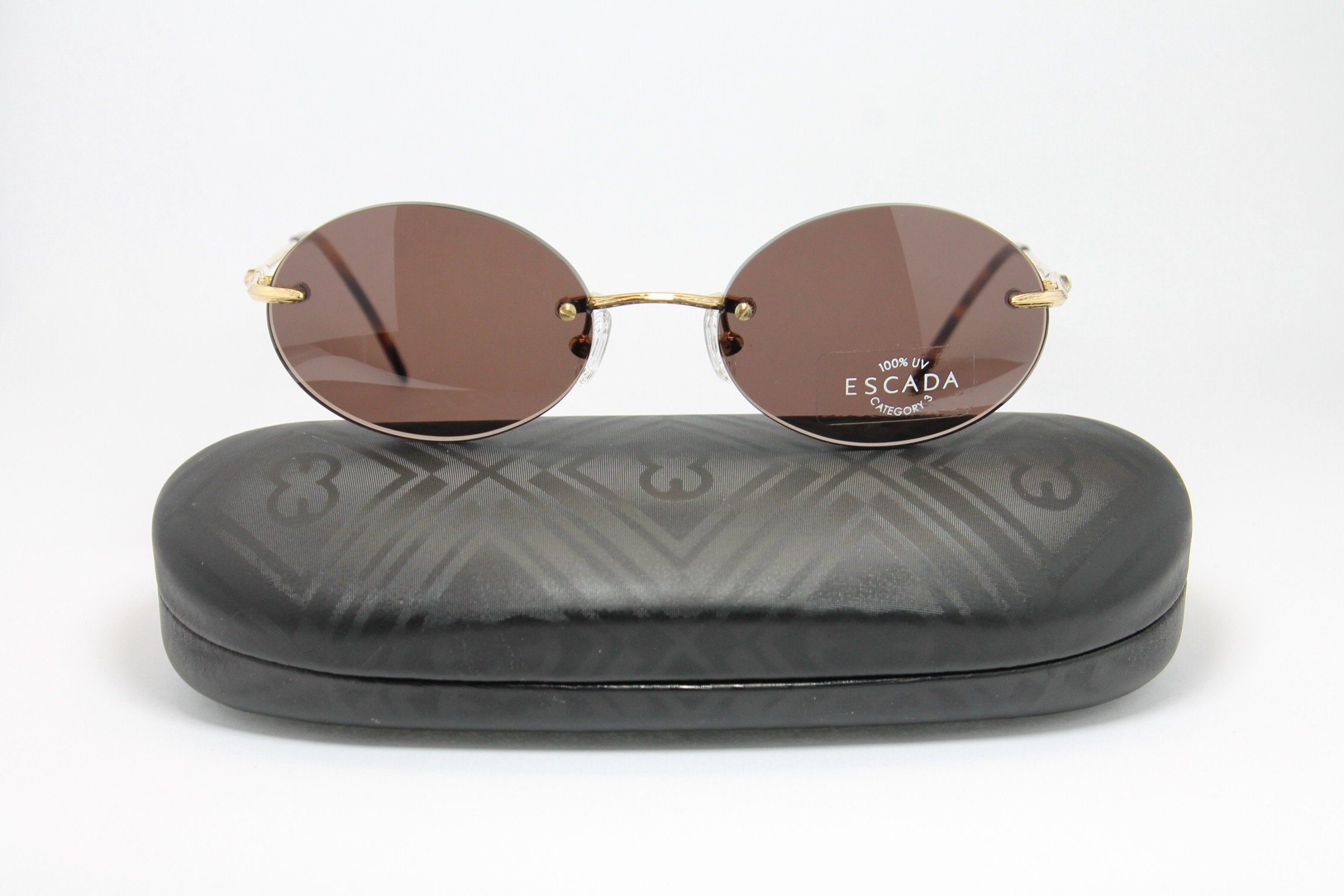Escada black & gold tone round sunglasses clearance, Escada Gold Sunglasses - Gem clearance