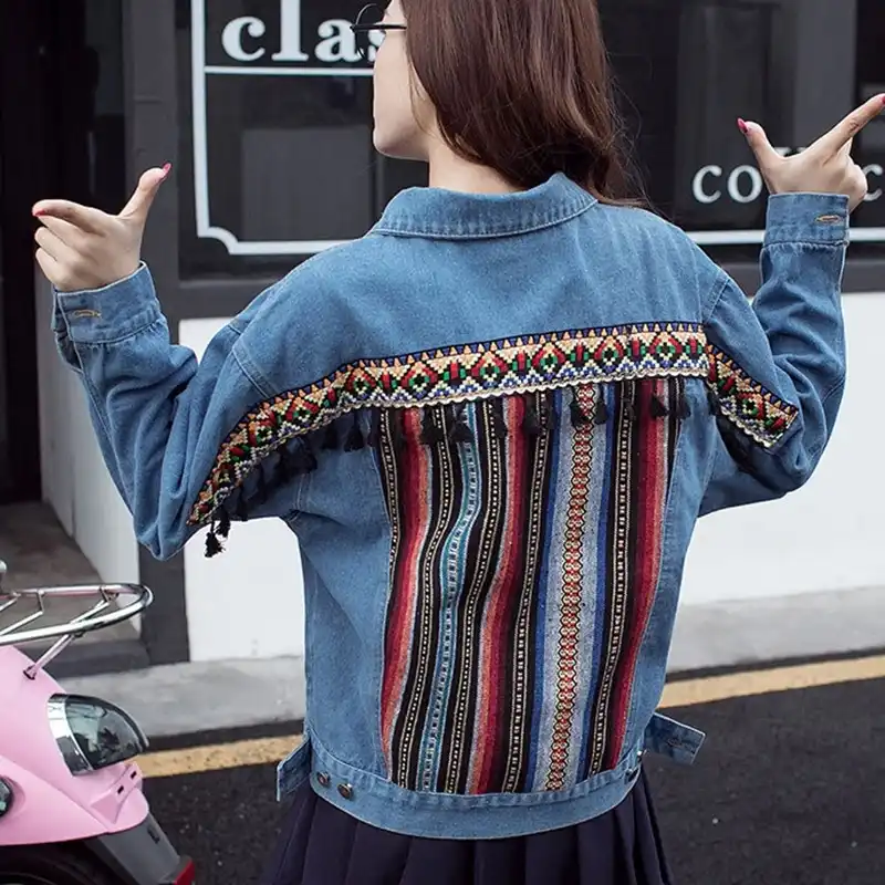 Hippie jean jacket clearance, Jean jacket 2018 women boho hippie chic clearance