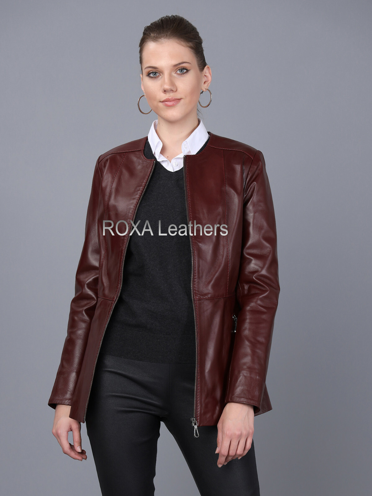 - Chocolate brown leather jacket women