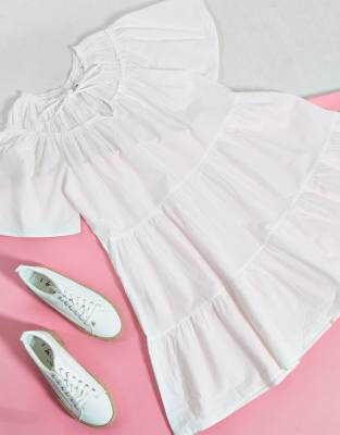 - Topshop poplin smock mini dress in white