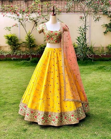 Haldi dress for bride amazon clearance, Lehenga Cholis clearance