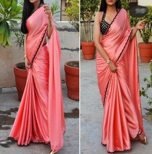 - Cheap Hot pink saree with black blouse