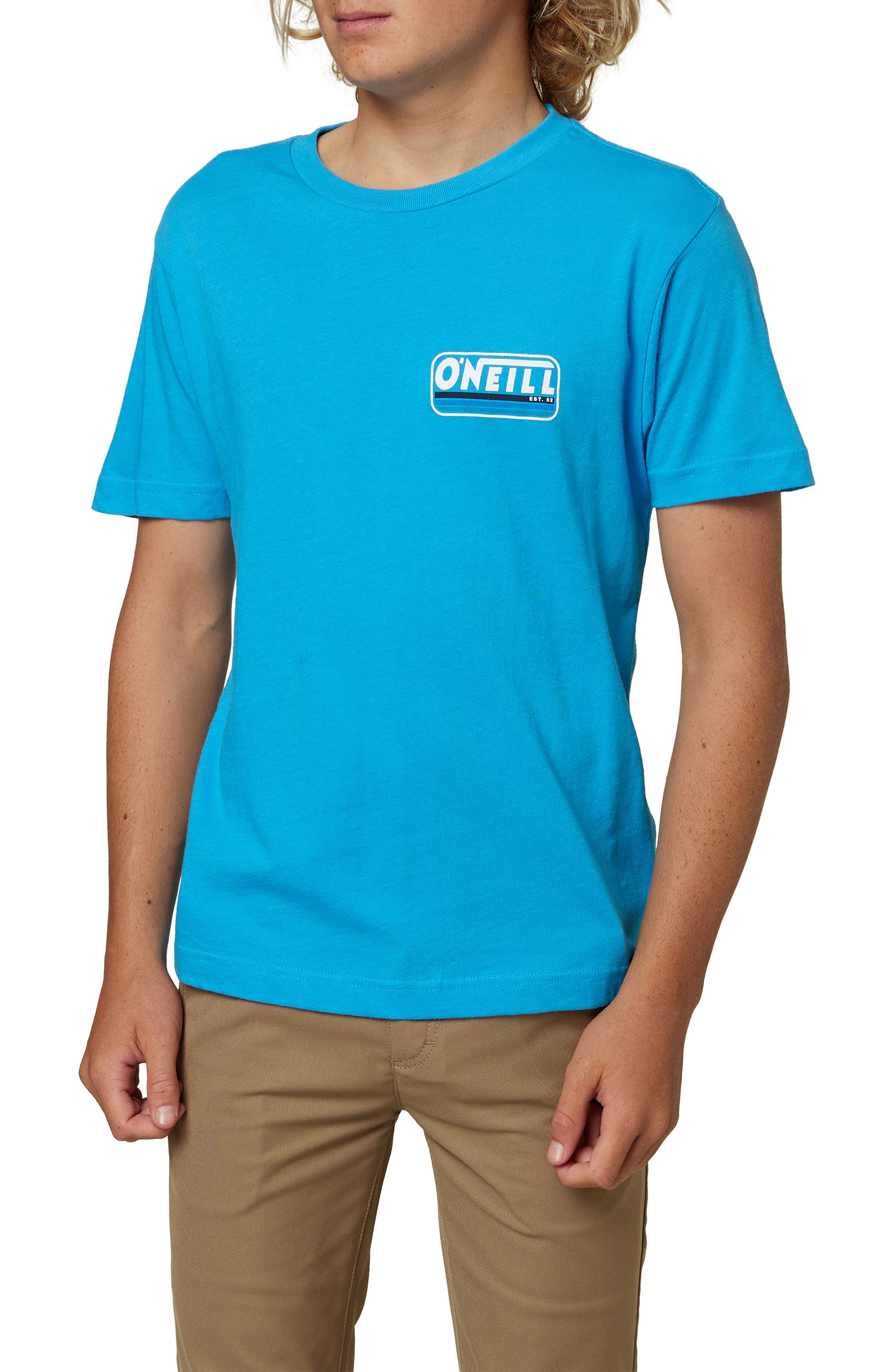 - Bright blue graphic tee clearance