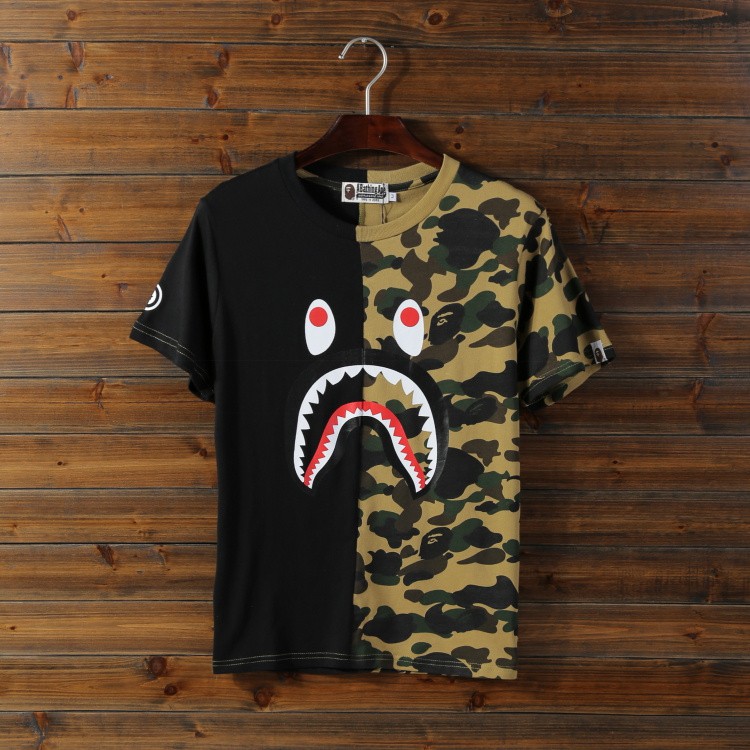 Bape half camo tee clearance, Printed shark stitching half-camouflage clearance