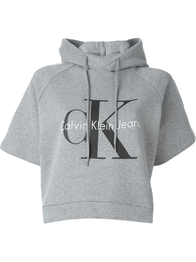 - Calvin klein grey cropped hoodie sale online