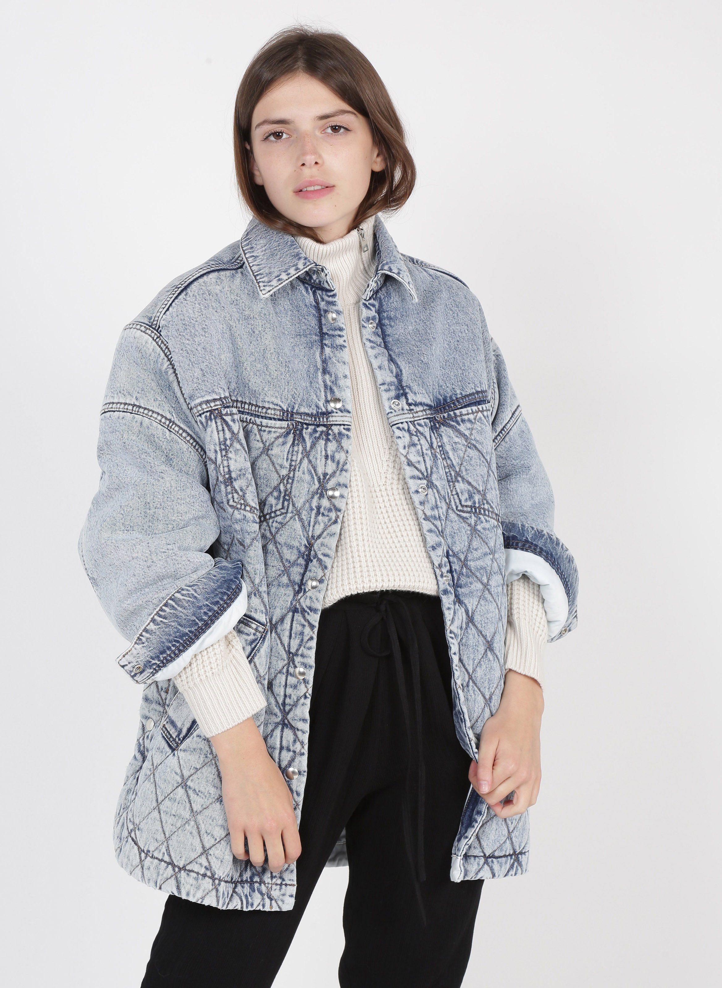 Iro oversized jacket clearance, Oversized Quilted Denim Jacket Snow clearance