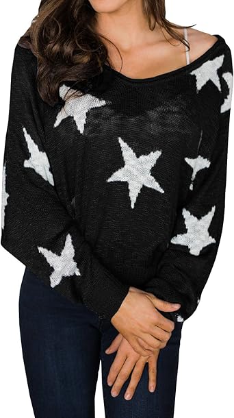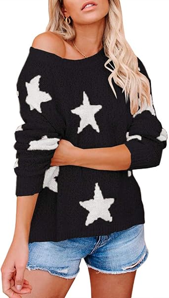 Women star sweater clearance, Women's Off Shoulder Star Sweater clearance