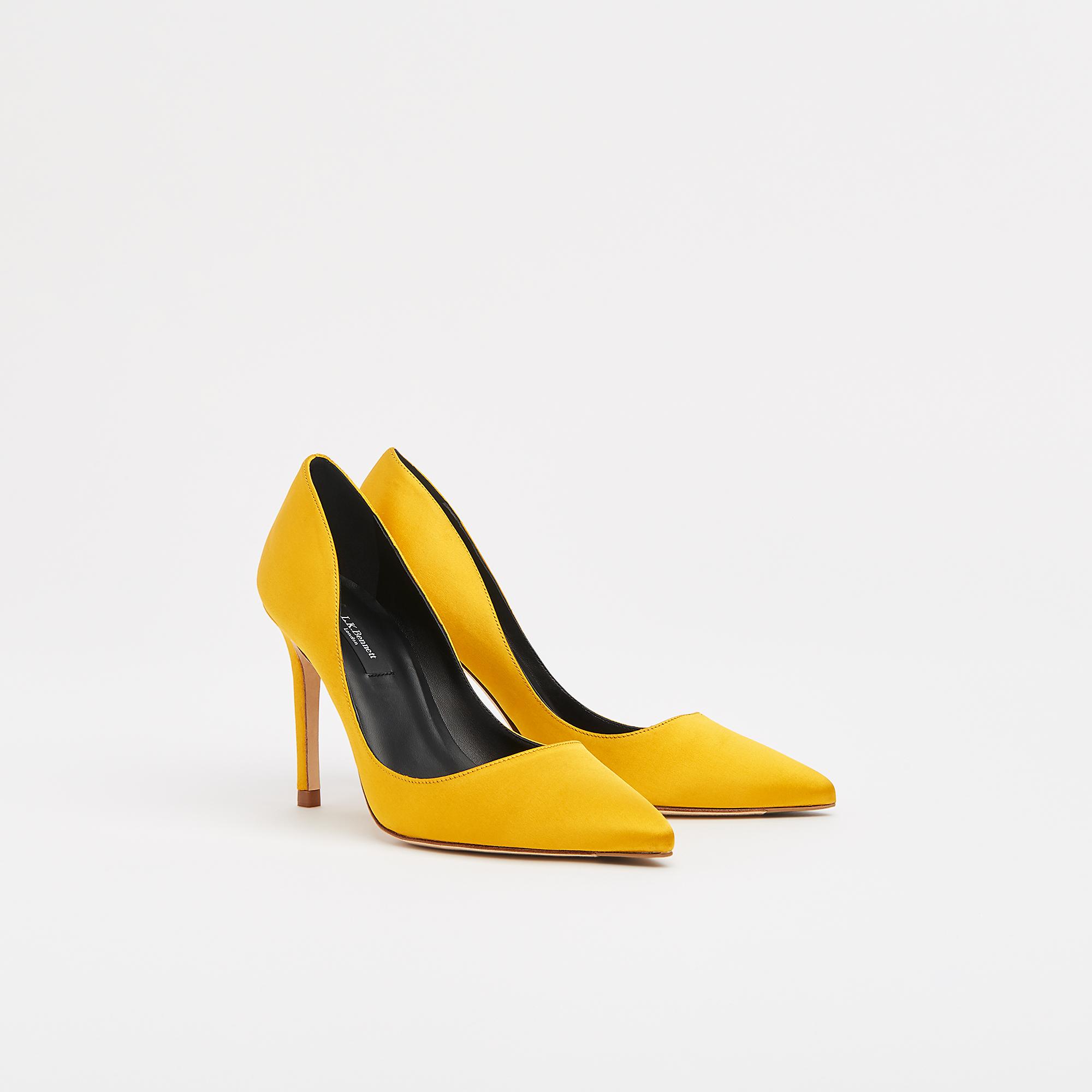 Yellow court shoes clearance, Flora Yellow Satin Pointed Courts clearance