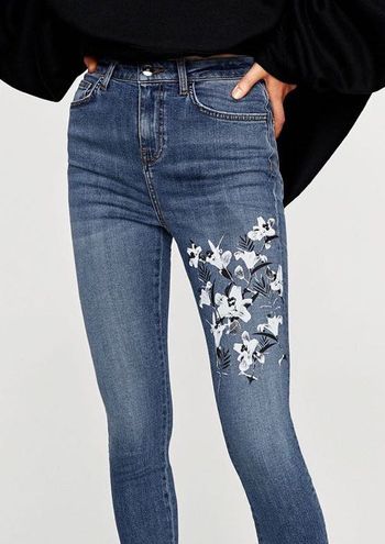 - Zara jeans with flowers free shipping