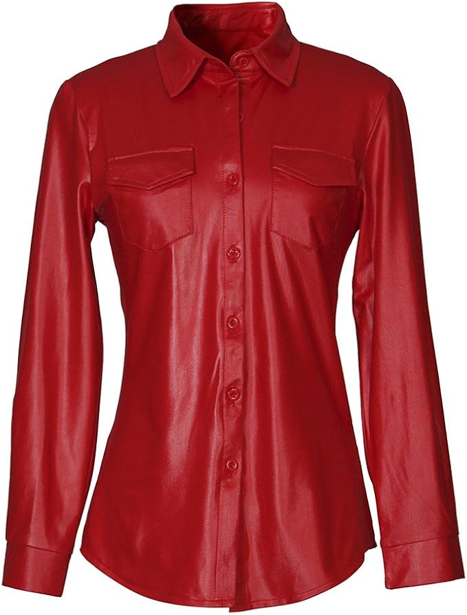 - Black faux leather shirt womens
