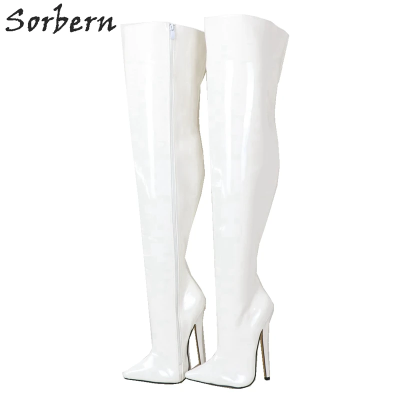 White patent leather thigh high boots clearance
