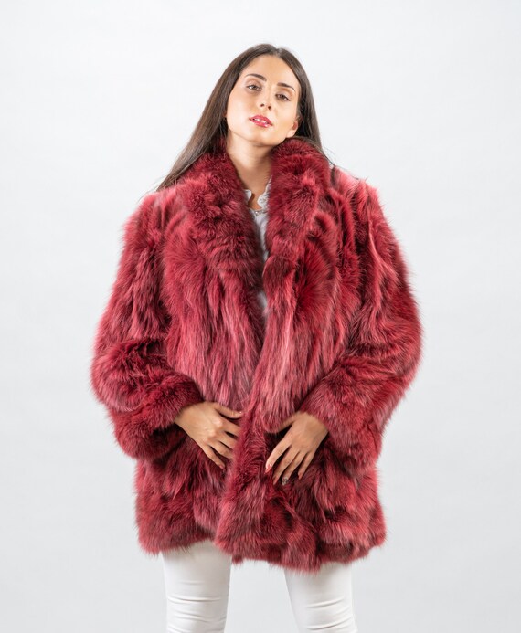 Red wine fur coat clearance, Short Fox Fur Coat Audrey - Real Fur Coats for Women - Aria Moda clearance