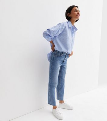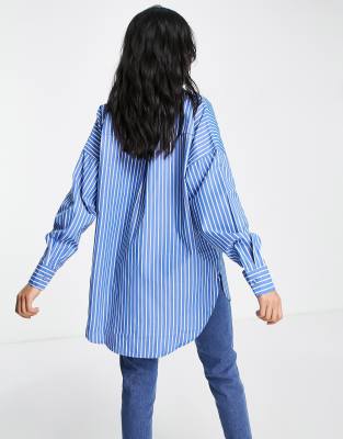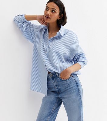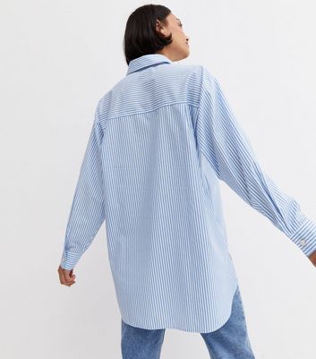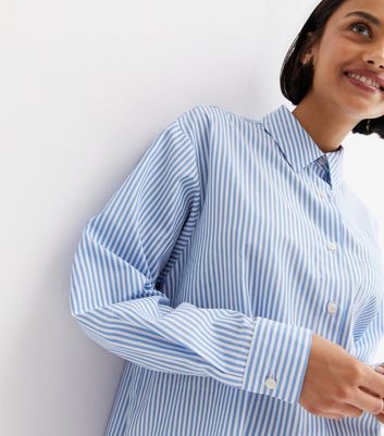 Blue stripe poplin shirt clearance, New Look Women's Plus Size Blue Stripe Poplin Long Sleeve Oversized Shirt Curves - UK 18 clearance