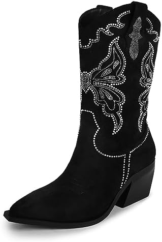 Cowboy boots with rhinestones clearance, Cowboy Boots Women Chunky Heel Studded Rhinestone Embroidered Rodeo Knee High Western - Walmart.com clearance