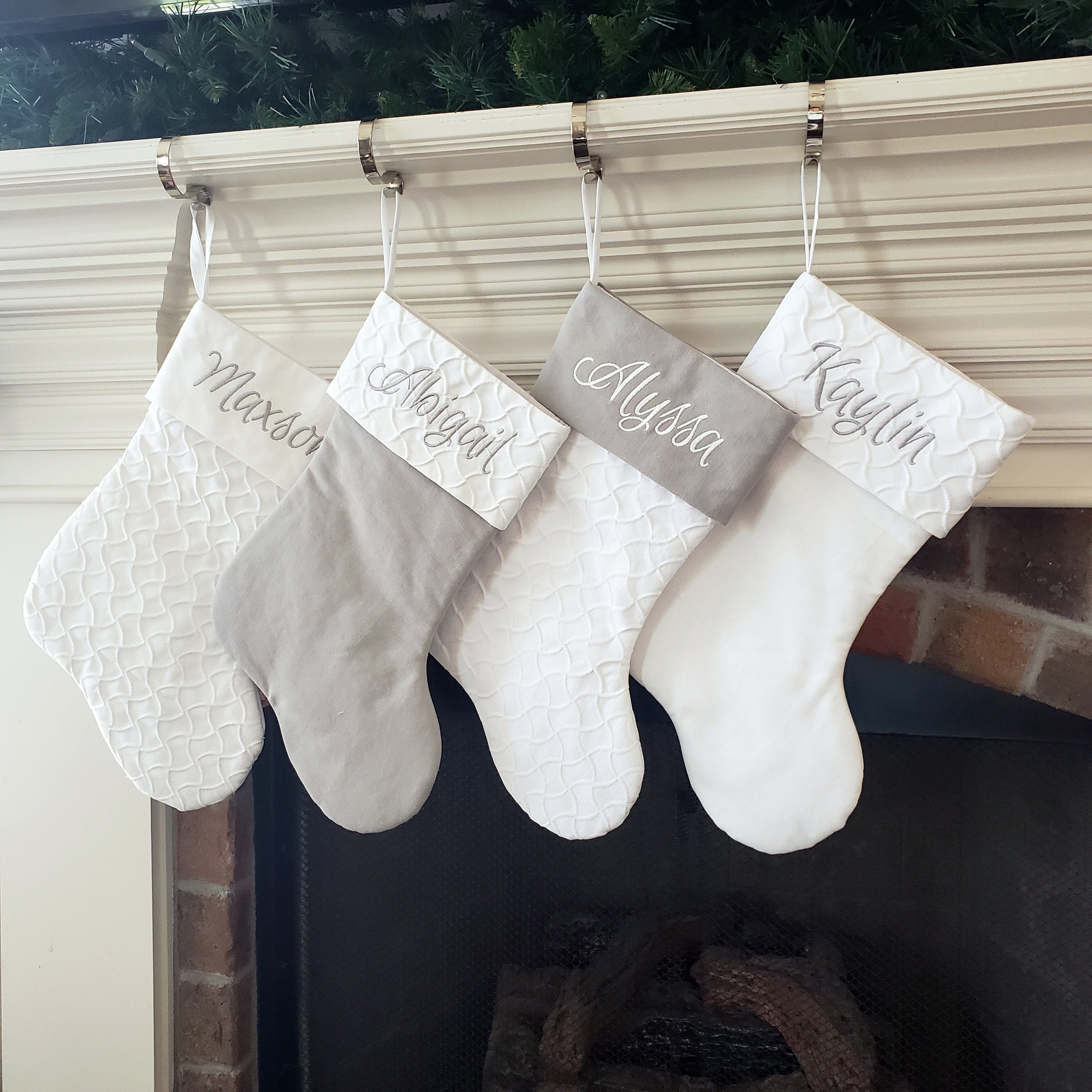 - White personalized christmas stockings