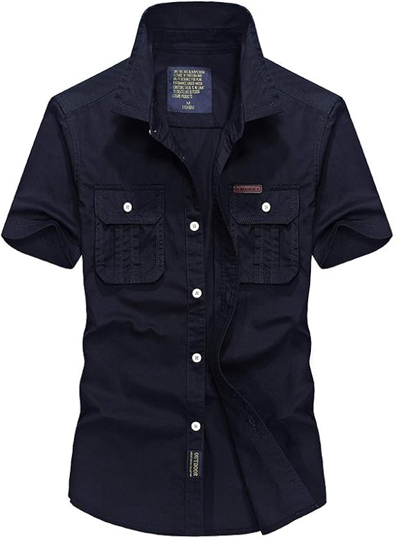 Mens 2 pocket shirts clearance, Men's Cargo Shirts Double Pocket Slim clearance