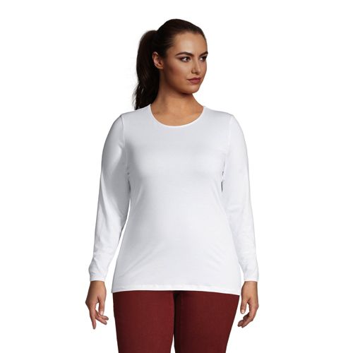 Plus size long sleeve undershirt clearance, Plus Size Lands' End Relaxed Supima Cotton Long Sleeve Crewneck T-Shirt, Women's, Size: 1XL, White clearance