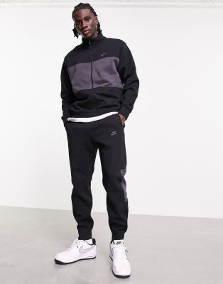 Nike colourblock fleece clearance, Nike fleece tracksuit in black and grey clearance