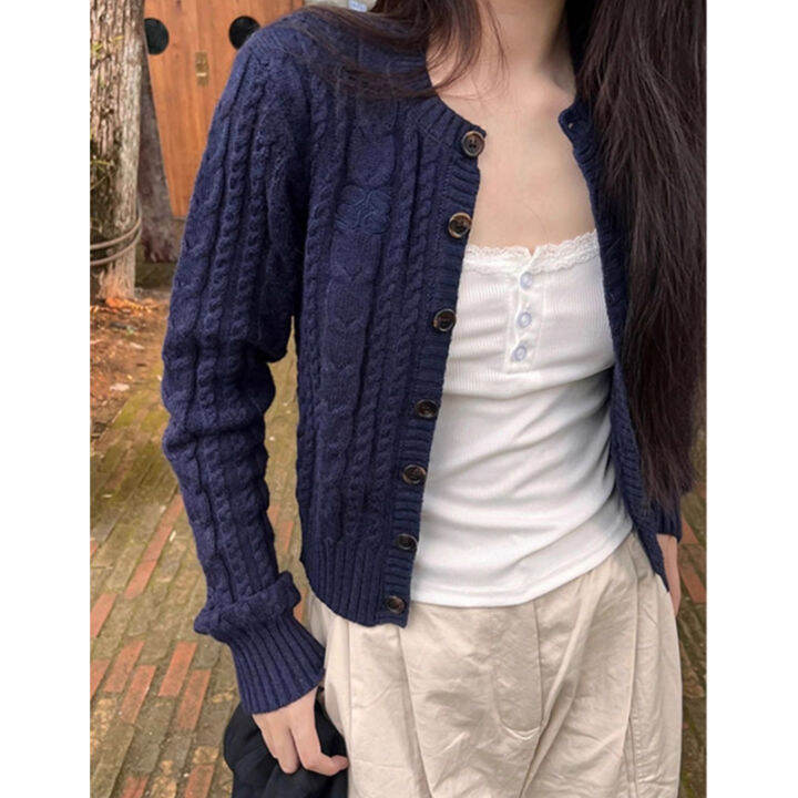 Navy cardigan sweater clearance