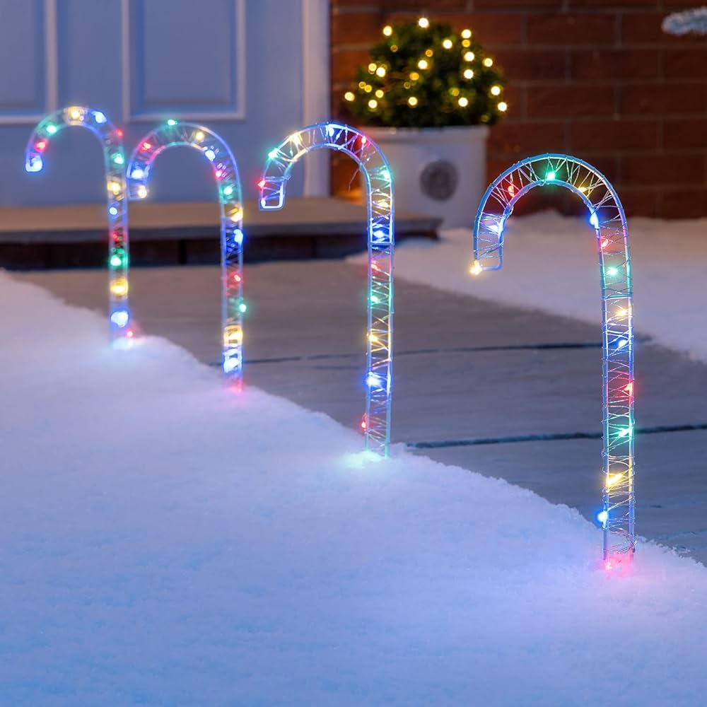 Candy christmas lights clearance, Outdoor Red and White Candy Cane Christmas Stake Lights, 4 Pack - EU Plug clearance