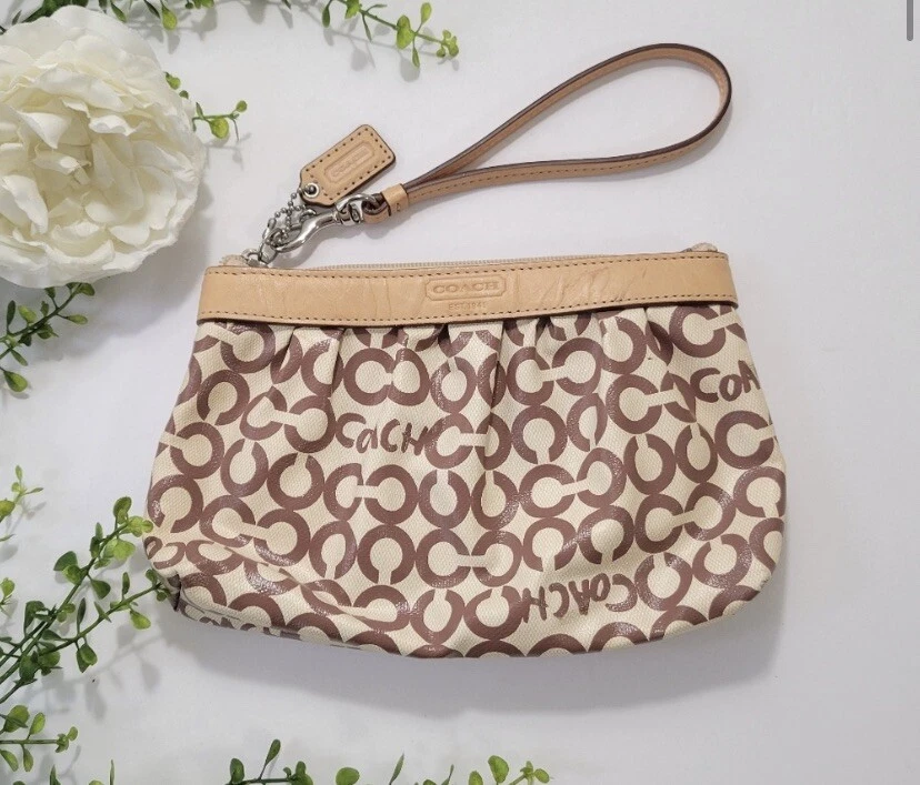 Coach wristlet cream clearance, COACH White and Cream Signature Optic Wristlet with Leather Trim | eBay clearance