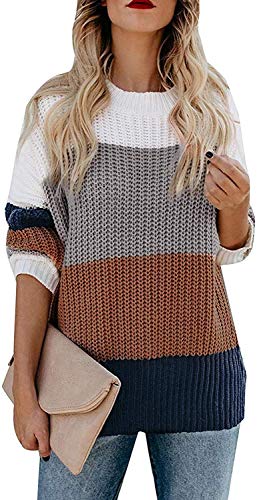 - Zesica women's long sleeve crew neck striped color block casual loose knitted pullover sweater tops outlet