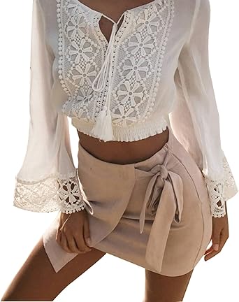 White lace tie front top clearance, White Lace Tie Front Long Sleeve Crop clearance
