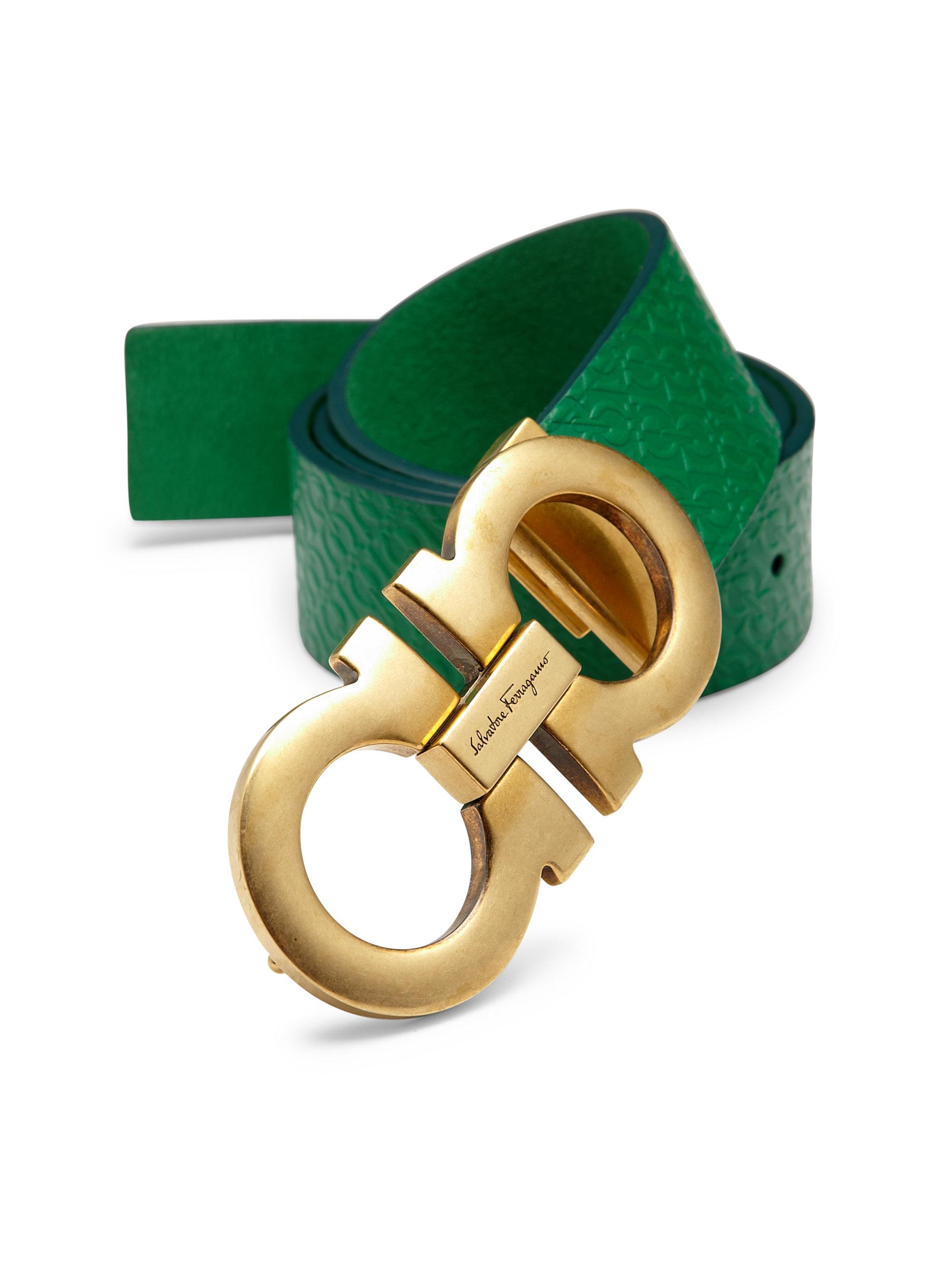 Green ferragamo belt clearance, Ferragamo Double Gancio Embossed clearance