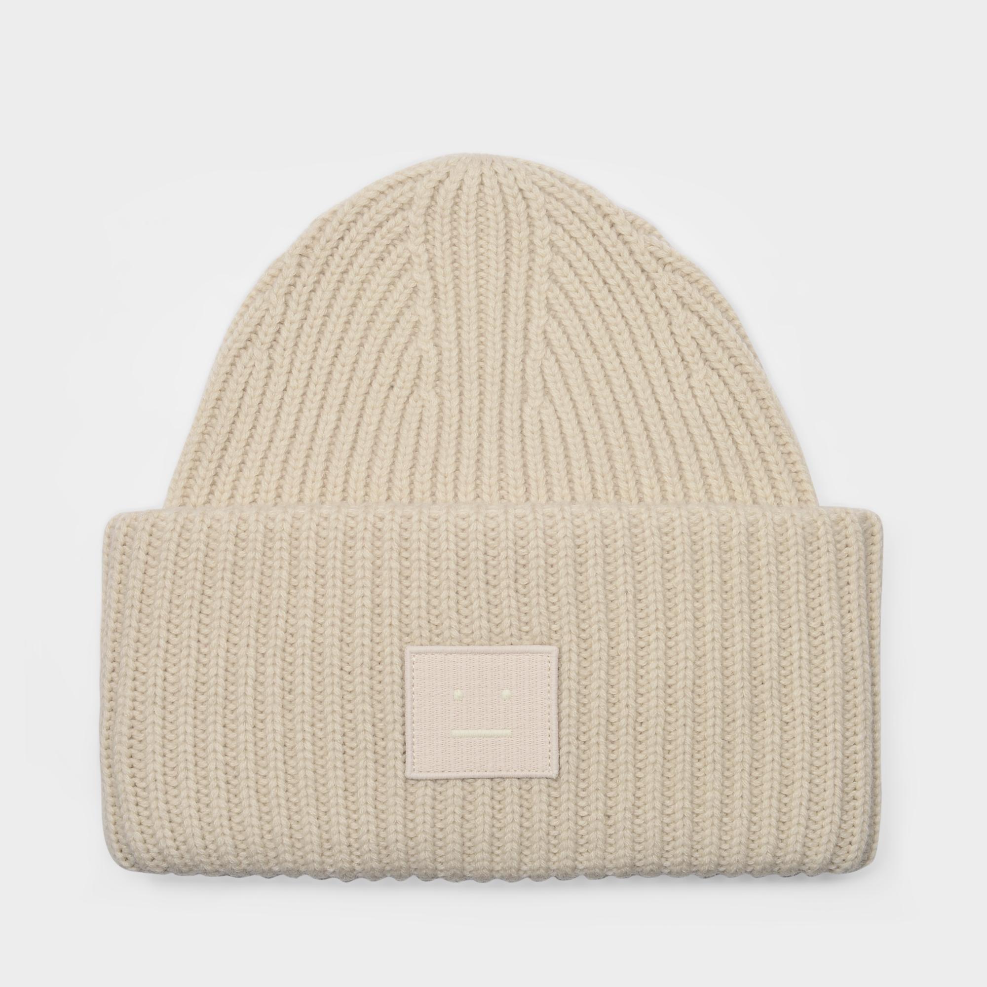 Rib knit beanie hat cream beige clearance, Acne Studios Rib knit beanie hat cream clearance
