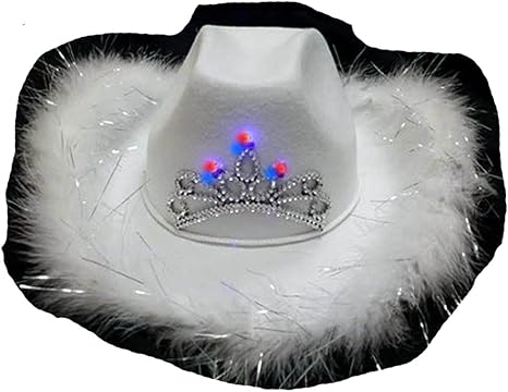White tiara cowboy hat clearance, LED Feather Cowgirl Hat - White clearance
