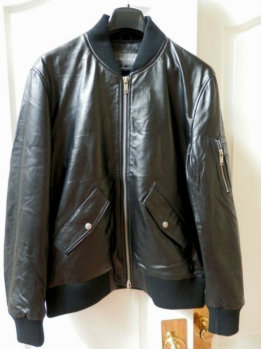 Slate and stone leather bomber jacket clearance, NEW SLATE u0026amp; STONE LEATHER JACKET, Sz. L black | eBay clearance