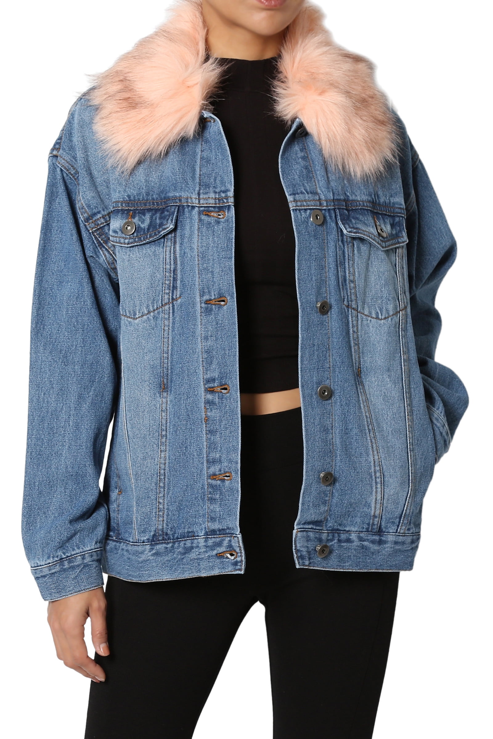 - Oversized denim jacket with faux fur free shipping