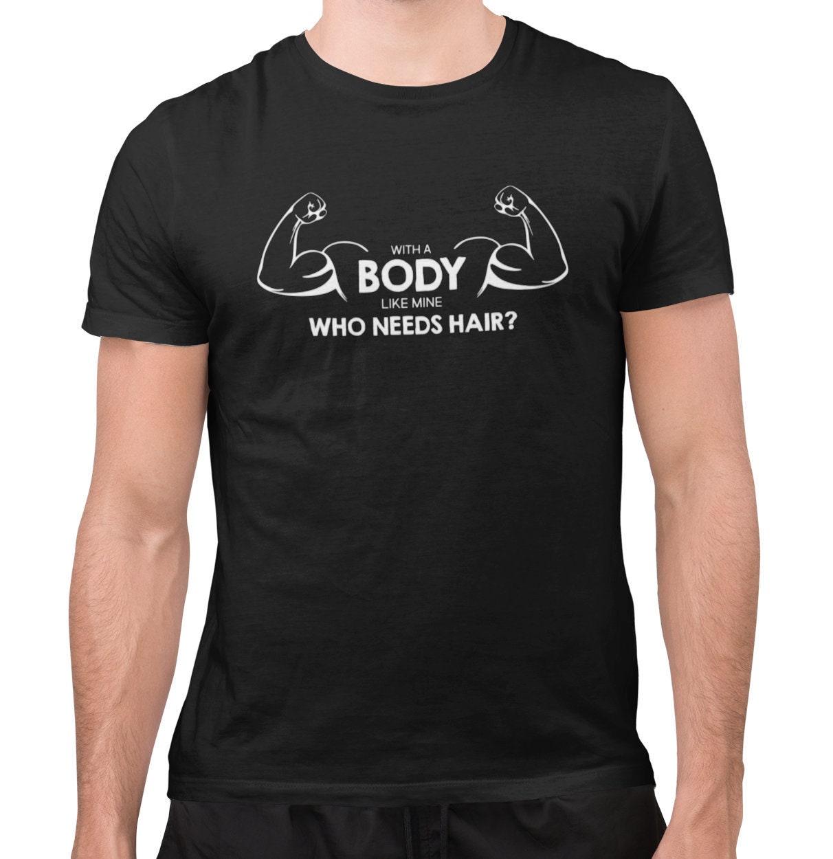 Body t shirt funny clearance, with A Body Like This Who Needs Hair Funny T Shirt - Organic Cotton Graphic Tee - Bald Tshirts for Men Dad Boyfriend clearance