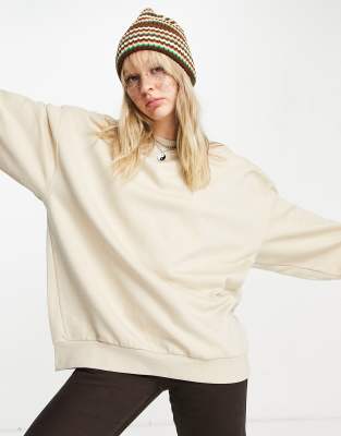 Cotton oversized sweatshirt clearance, Weekday Core Cotton Oversized Sweatshirt in Beige - beige-Neutral clearance