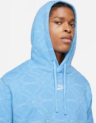 Blue nike hoodie with nike all over clearance, Nike Branded AOP Pack fleece hoodie in clearance