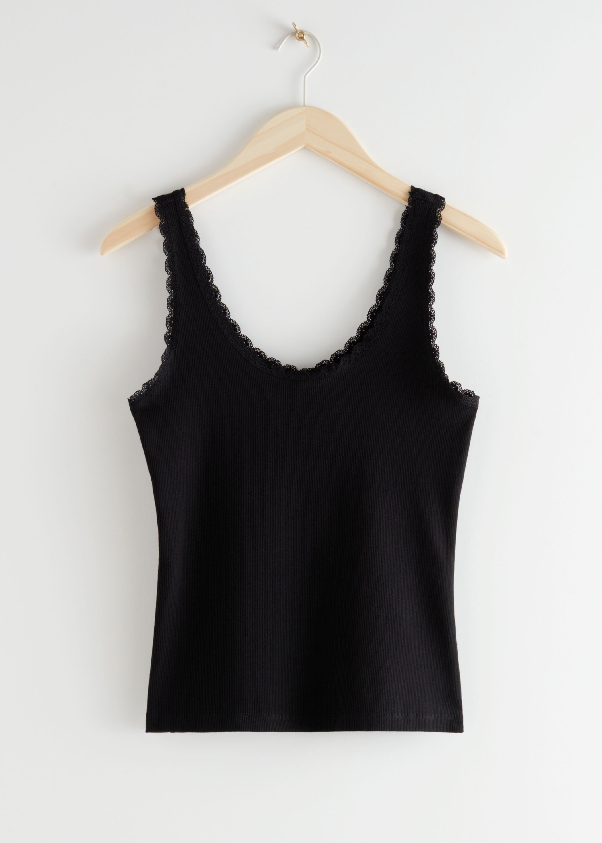 - Lace trim ribbed tank top