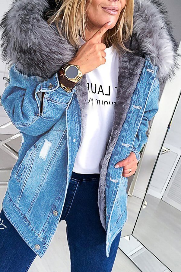 - Jean jacket with fur hood free shipping