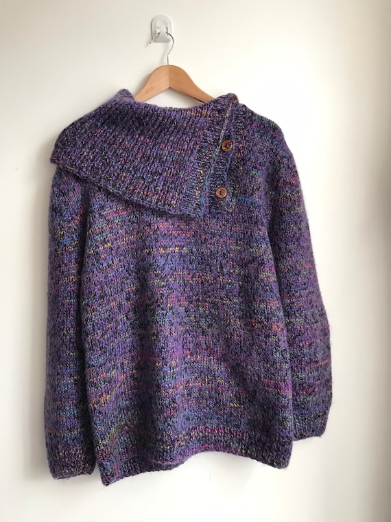 Jumper with big collar clearance, Hand knitted womens sweater big collar clearance
