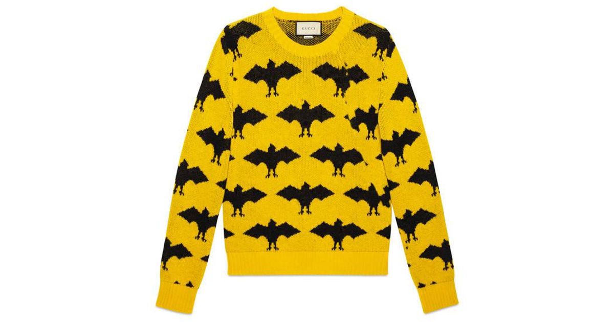 Gucci bat sweater clearance, Gucci yellow sweater with black bats clearance
