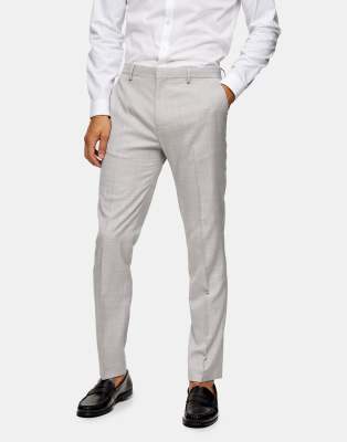 Topman suit pants clearance, Topman,Grey Textured Wool Blend Skinny clearance