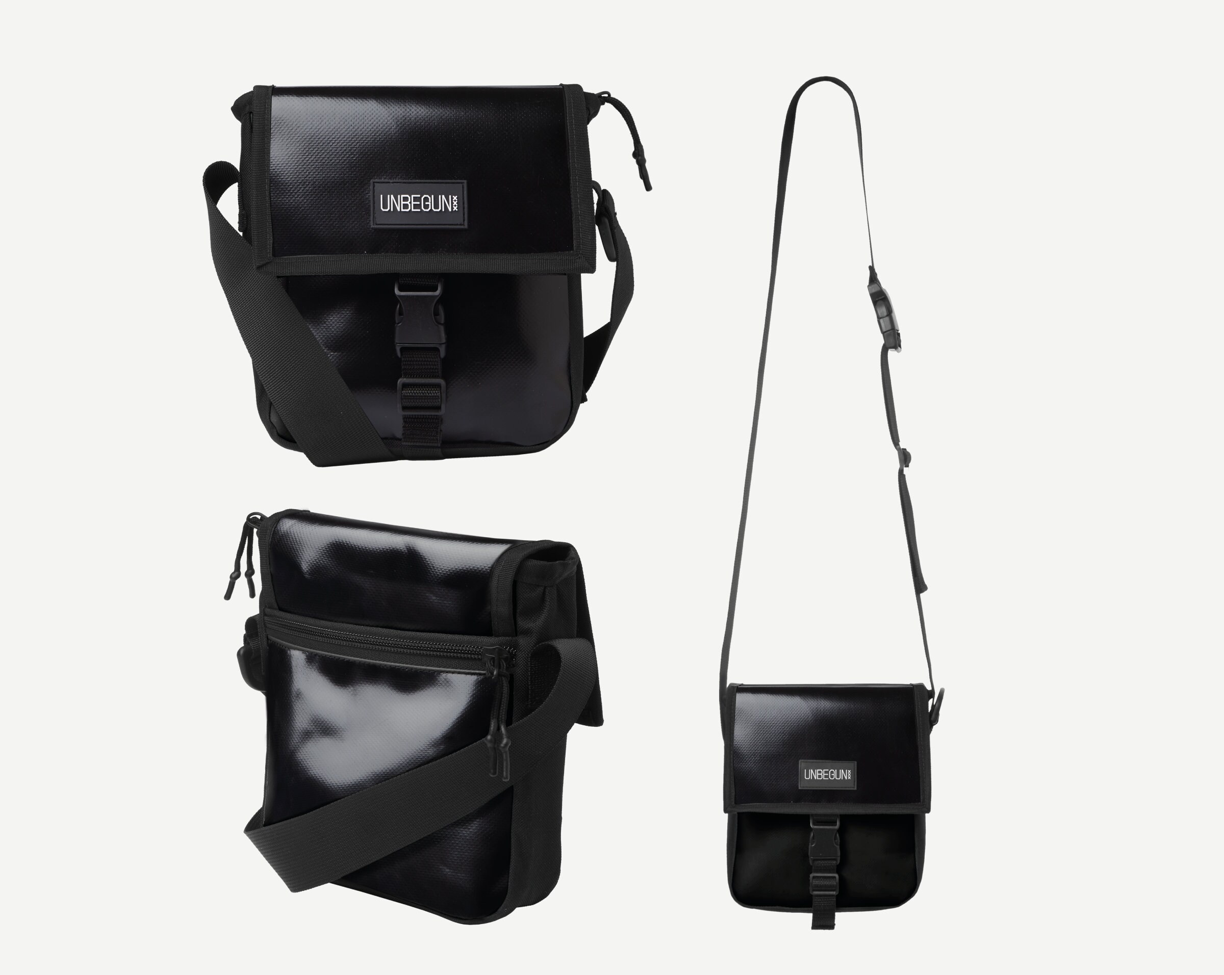 - Black fabric crossbody bag