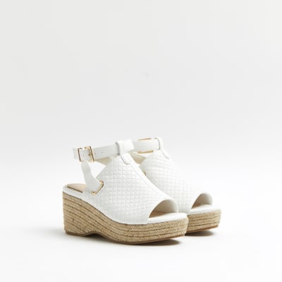 River island girls wedges clearance, Girls white RI embossed open toe heel clearance
