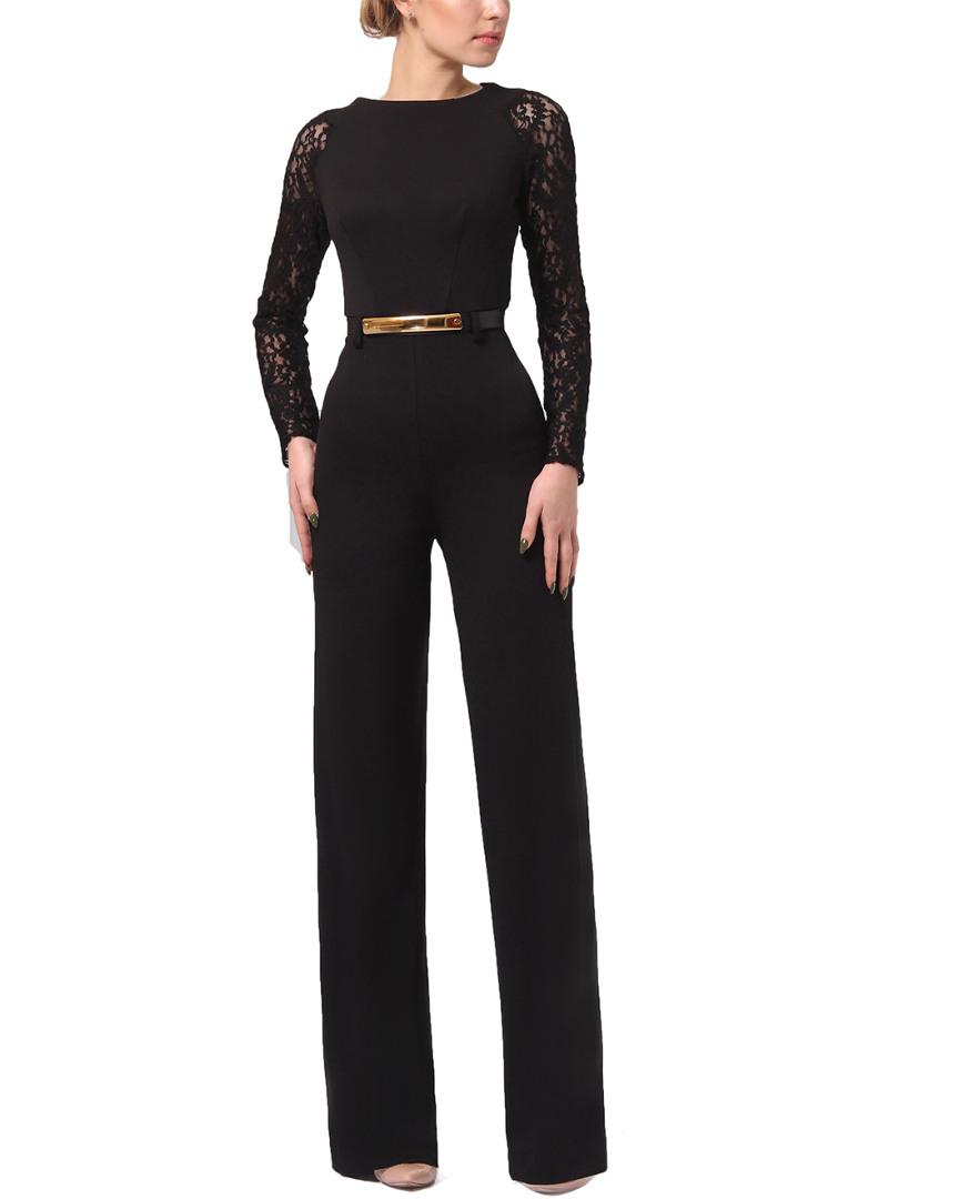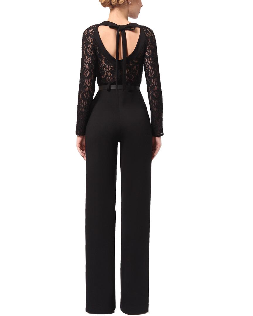 Lila kass jumpsuit clearance, Black Lace-Contrast Tie-Back Jumpsuit clearance