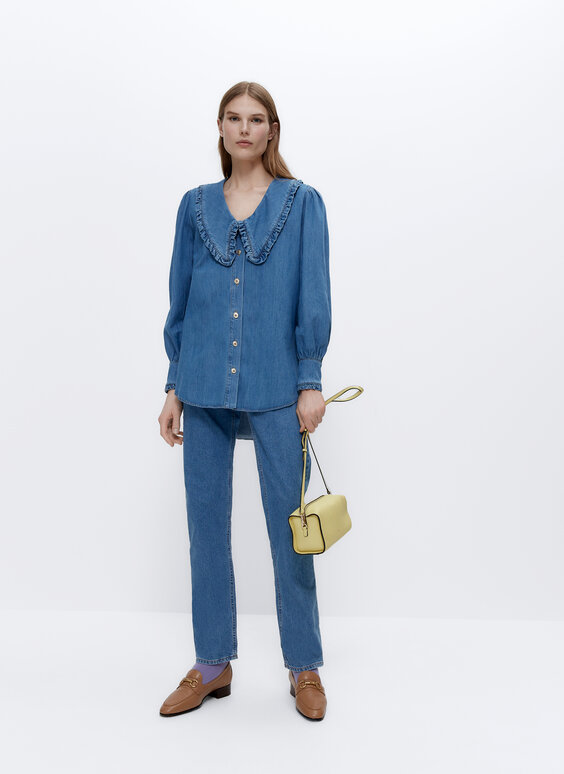 - Peter pan collar denim shirt